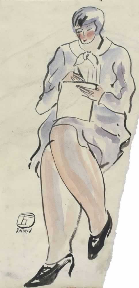 W136, 1920s/30s, ink and watercolor on paper, 39.2 x 19.8 cmSigned in Chinese and in French at lower right