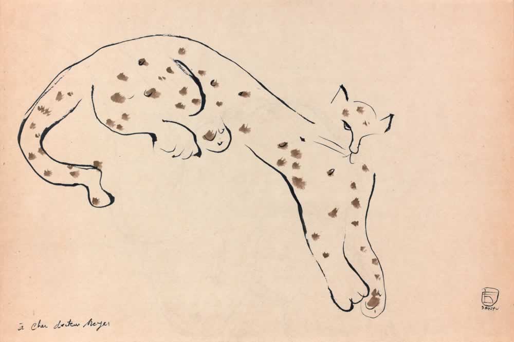 以中文及法文簽於右下方,並題獻「給親愛的梅耶醫師」