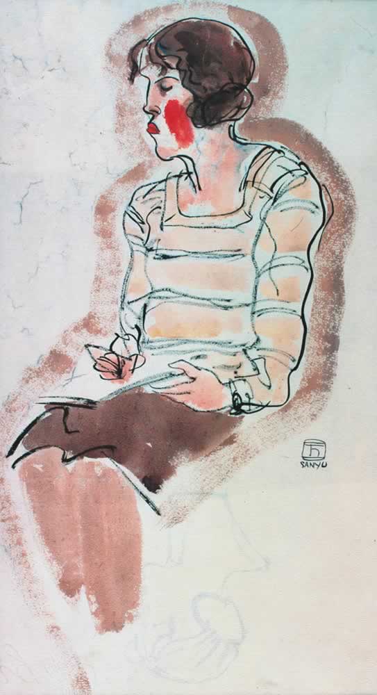 W103, 1920s/30s, ink and watercolor on paper, 45 x 25 cmSigned in Chinese and in French at center right