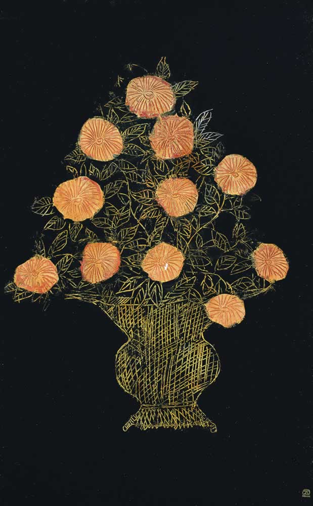 題字瓶中的菊花
