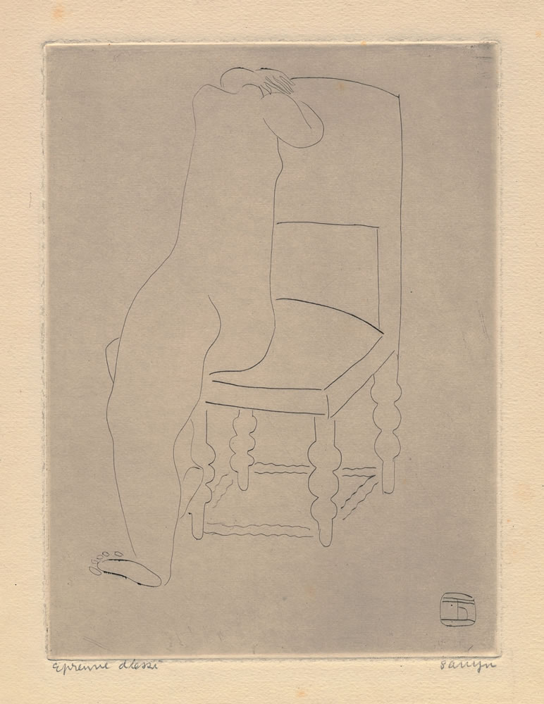 P5, ca. 1929, 直刻 鋅版 Rives BFK 版畫紙, 16.5 x 12.2 cm畫版右下方刻有中文名以法文簽名標註 Épreuve d’essai(試版)亨利.皮爾.侯謝舊藏(庫存第 8 4 G 號,留有原始標籤)