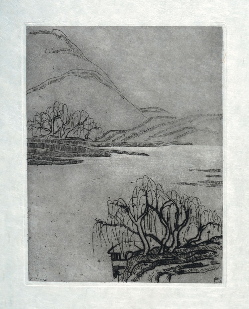 P25a, 1930, copperplate etching on Japon nacré paper, 15 x 9.2 cmEngraved on plate, lower right, yu in Chinese
