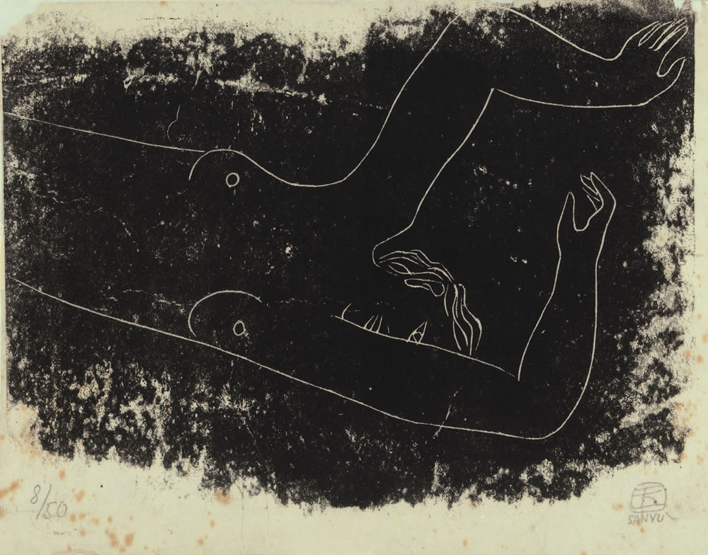 P41, 1930s–40s, linocut in black on paper, 21 x 27.5 cmSigned in Chinese and in French Numbered 8/50 [ANOTHER KNOWN IMPRESSION] Numbered 9/50