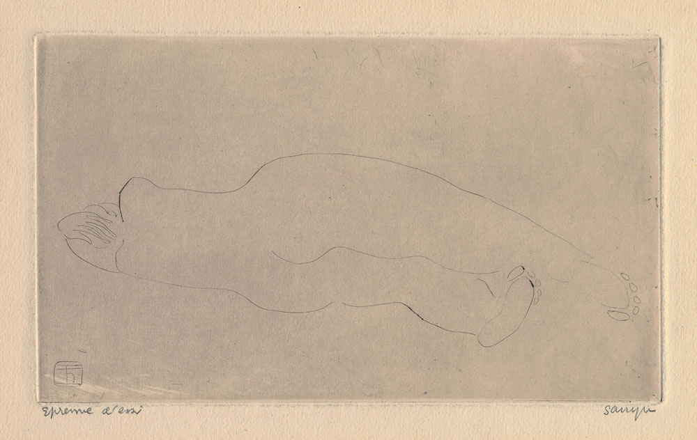 P6, ca. 1929, drypoint on Rives BFK paper, 10 x 16.5 cmEngraved on plate, lower left, yu in ChineseSigned in FrenchMarked Épreuve d’essaiCollection Henri-Pierre Roché (inventory number 8 4 E, with original label)