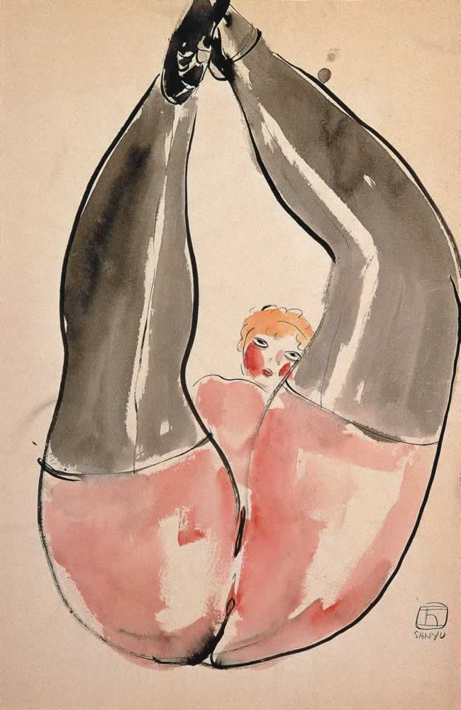舉腿黑絲襪女士