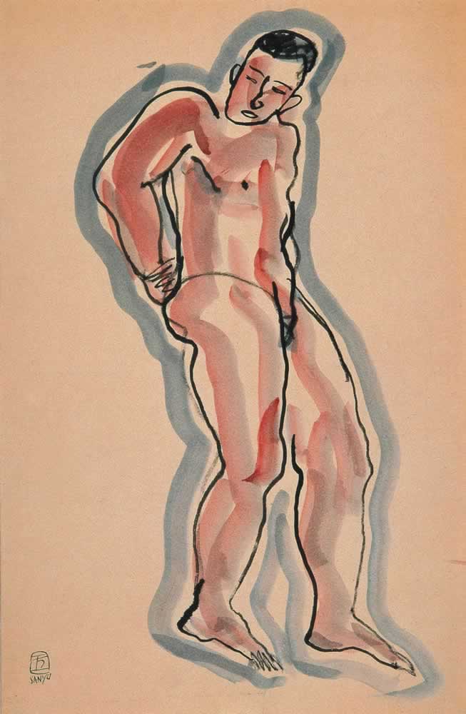 立姿藍影裸男