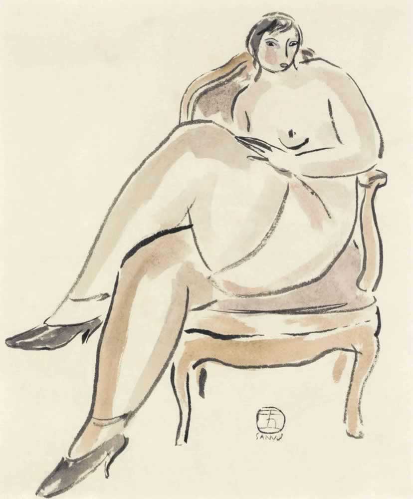 扶手椅上的蹺腿裸女