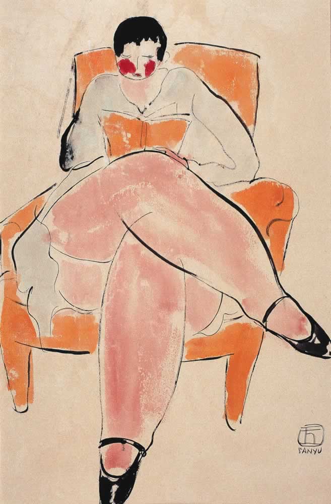黃扶手椅上的女士
