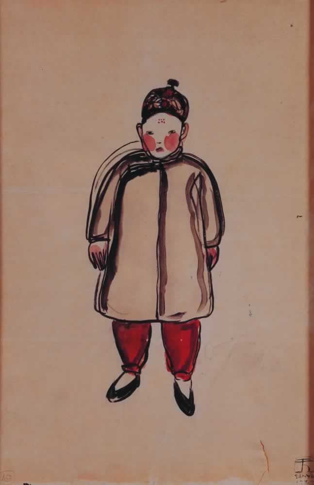 以中文及法文簽於右下方,並具年份1929