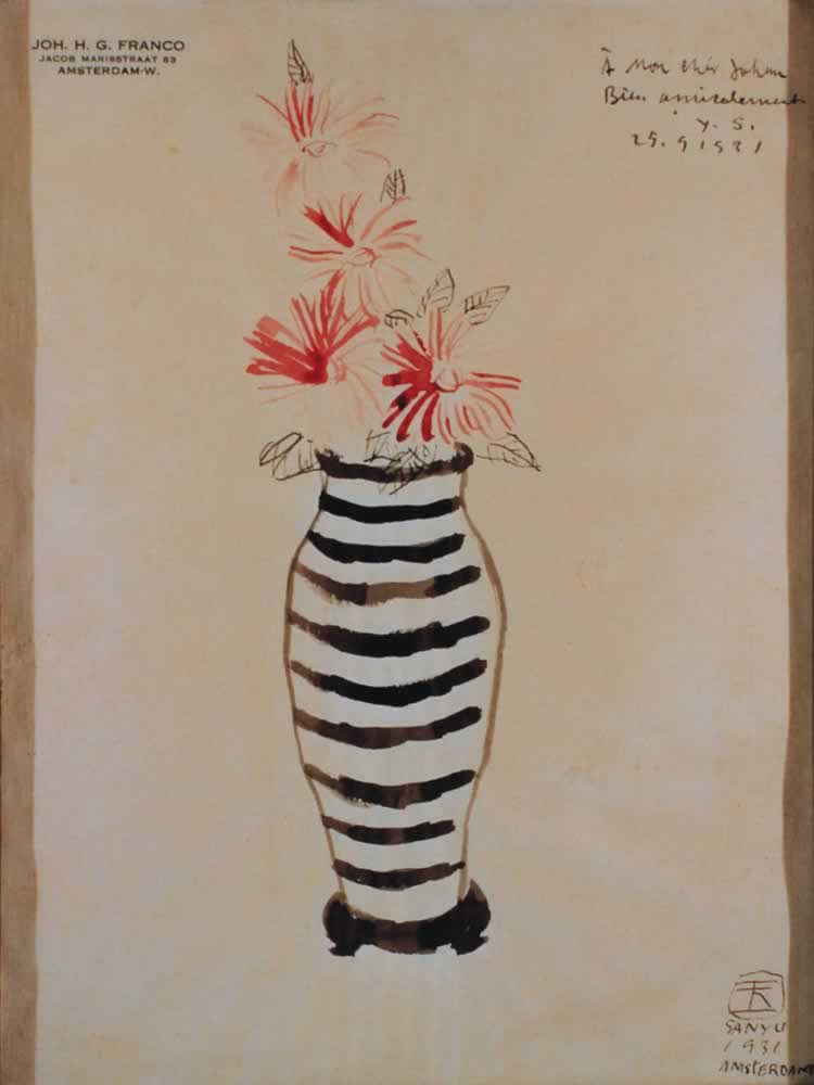 W181, 1931, 水墨 水彩 標有「JOH. H.G. FRANCO. Jacob Marisstraat 83, Amsterdam-W.」之信紙, 28 x 20.5 cm以中文及法文簽於右下方,並具年份1931阿姆斯特丹,並題獻「給我親愛的約翰,友Y.S.,1931年9月25日」