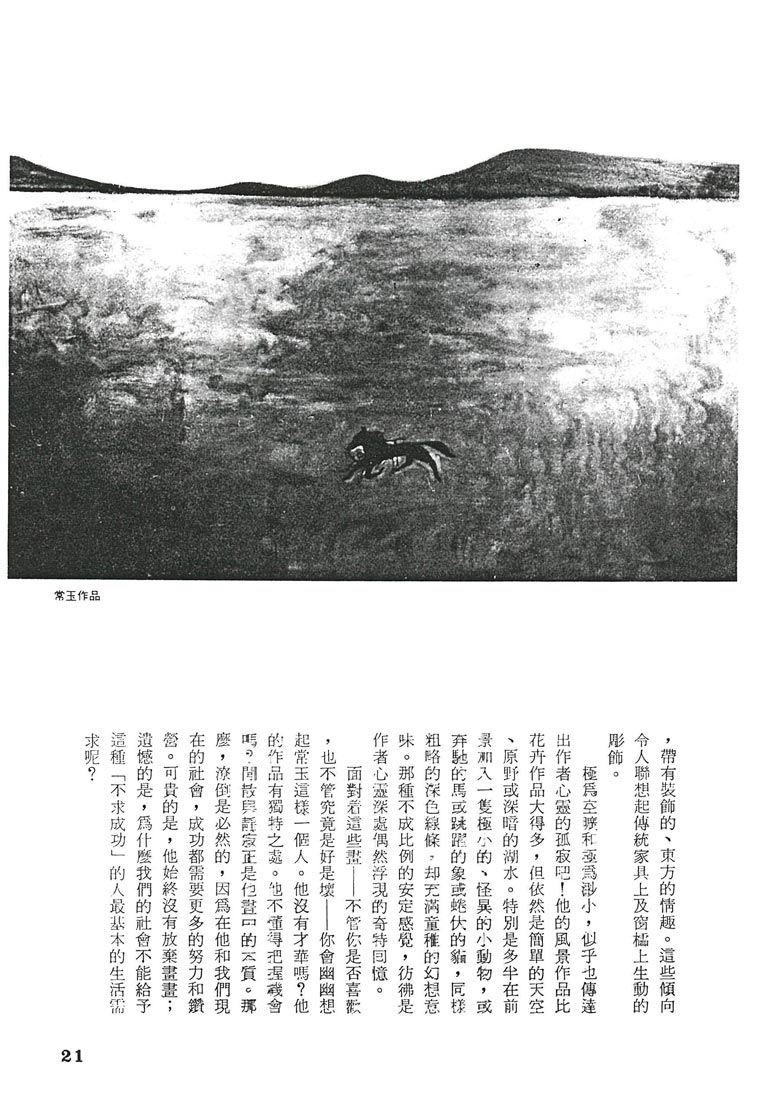 常玉畫展九月十六日至廿二日將在歷史博物館展出了!這項延宕了十餘年的畫展,對於一生沈沒在巴黎的常玉是無法增添任何光彩,更無法挽回任何機運的;但是,對於我們——少數認識他及所有聽過他的事、關心他的人——卻像終於能完成一件長久記掛內心的托付一樣,感到高興和安慰。