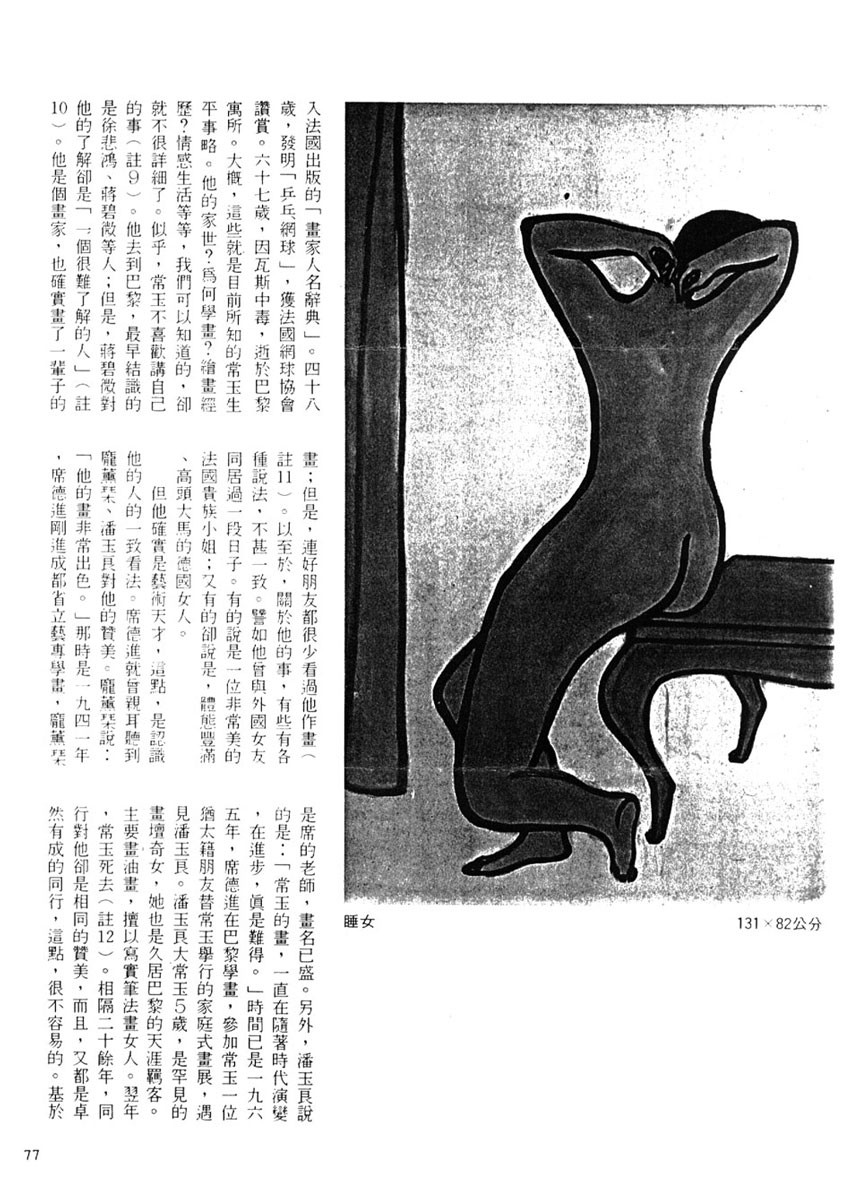註8 雄獅美術九月刊九一期,江萌(熊秉明)的「盆花——談常玉的畫」一文,有此句:「至於他畫的很多裸女,是我所不懂得的一類。」