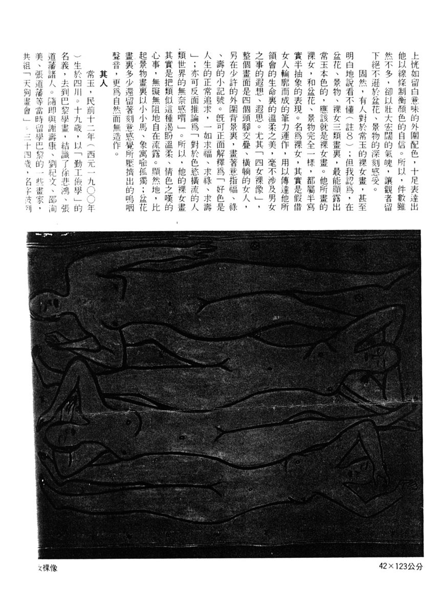 註8 雄獅美術九月刊九一期,江萌(熊秉明)的「盆花——談常玉的畫」一文,有此句:「至於他畫的很多裸女,是我所不懂得的一類。」
