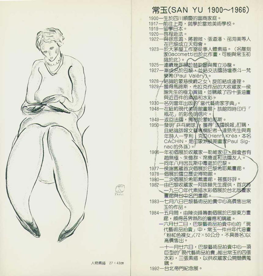 1923—於大茅屋工作室從事人體素描。(名雕刻家Gacometti也於此作畫,可能與常玉初識於此)。