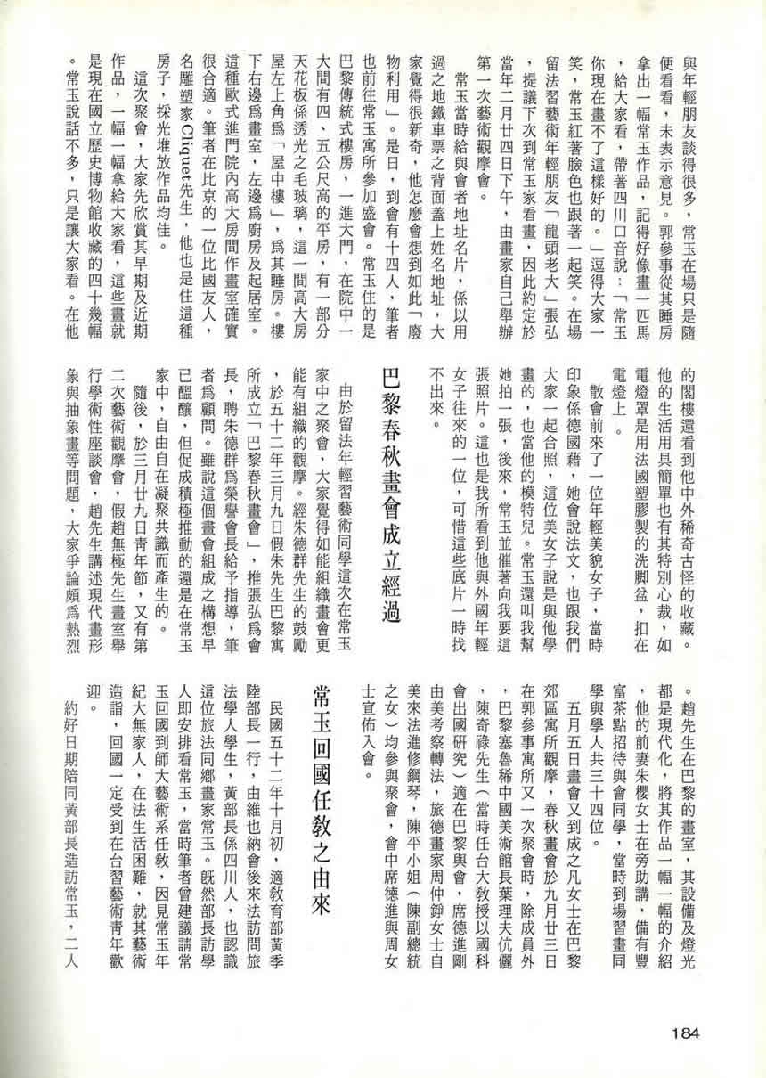 茲將筆者認識常玉,與巴黎春秋畫會之組成關鍵及其作品運台經過,就筆者所知陳述如後: