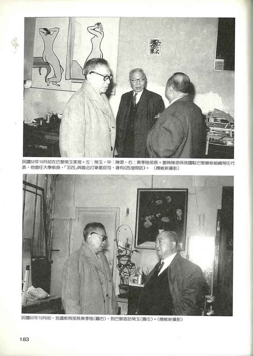 民國五十二年十月初,適教育部黃季陸部長一行,由維也納會後來法訪問旅法學人學生,黃部長係四川人,也認識這位旅法同鄉畫家常玉。既然部長訪學人即安排看常玉,當時筆者曾建議請常玉回國到師大藝術系任教,因見常玉年紀大無家人,在法生活困難,就其藝術造詣,回國一定受到在台習藝術青年歡迎。