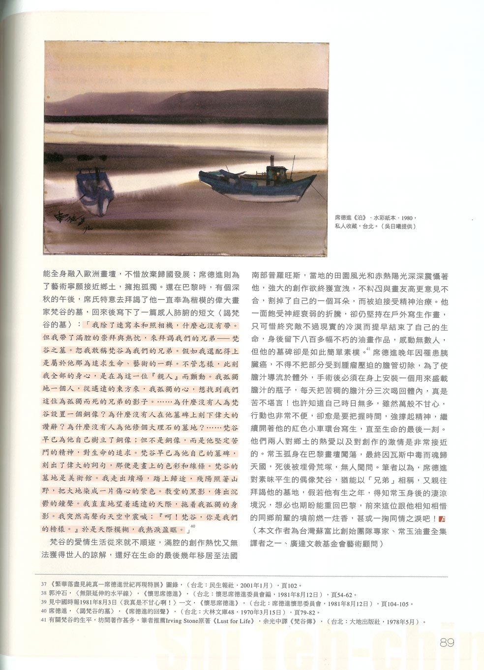 註40 席德進,〈謁梵谷的墓〉,《席德進的回聲》,(台北:大林文庫48,1970年3月15日),頁79-82。