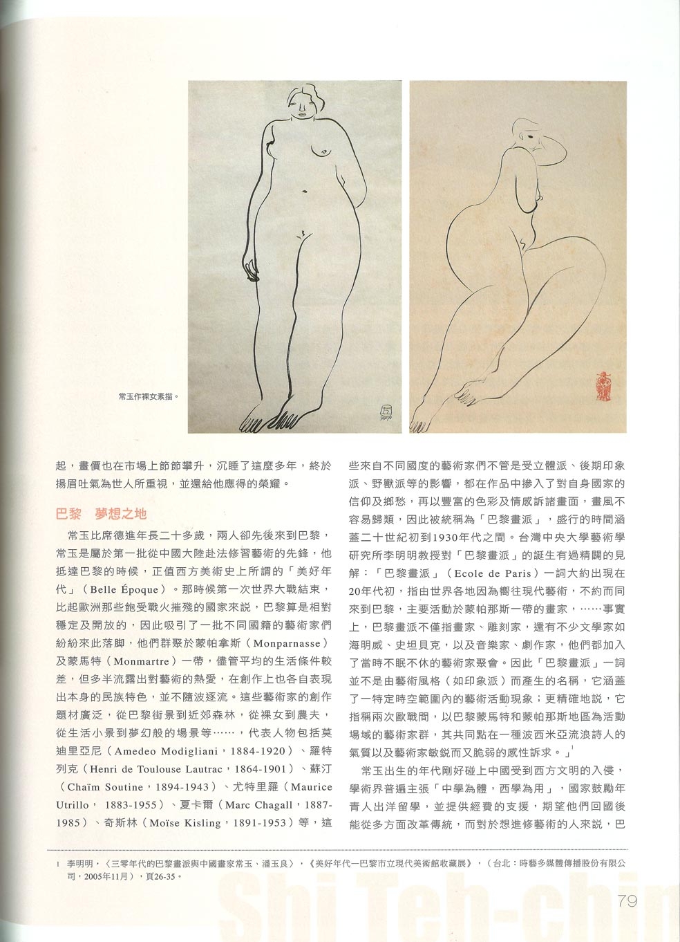 註1 李明明,〈三零年代的巴黎畫派與中國畫家常玉、潘玉良〉,《美好年代——巴黎市立現代美術館收藏展》,(台北:時藝多媒體傳播股份有限公司,2005年11月),頁26-35。