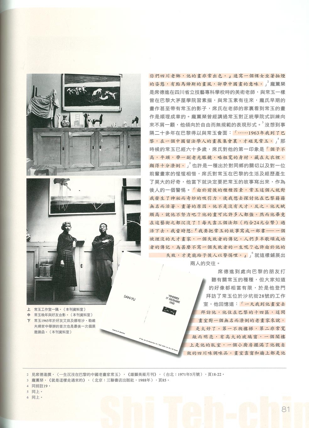 註2 見席德進撰,〈一生沉沒在巴黎的中國老畫家常玉〉,《雄獅美術月刊》,(台北:1971年5月號),頁18-22。