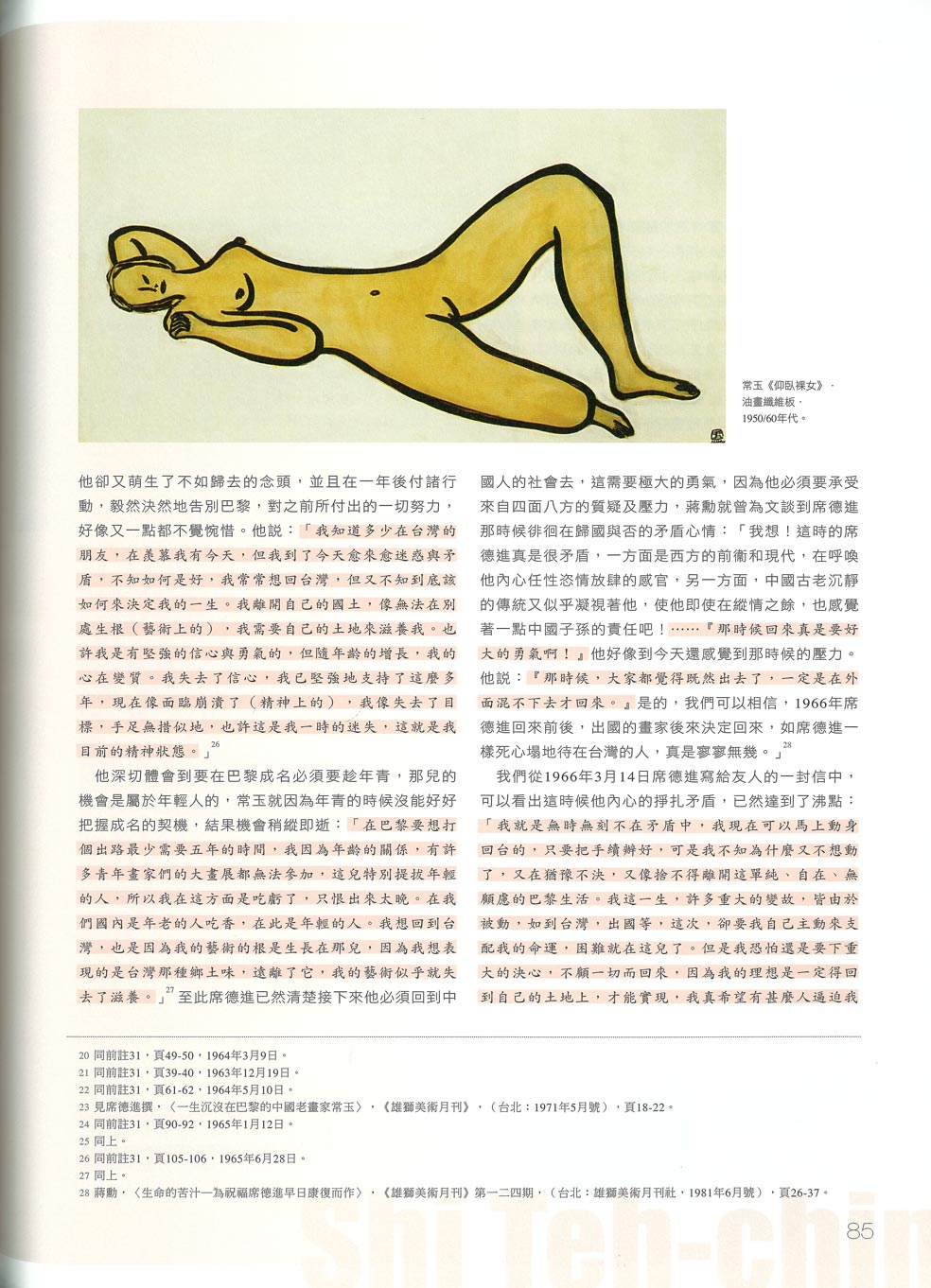 註23 見席德進撰,〈一生沉沒在巴黎的中國老畫家常玉〉,《雄獅美術月刊》,(台北:1971年5月號),頁18-22。