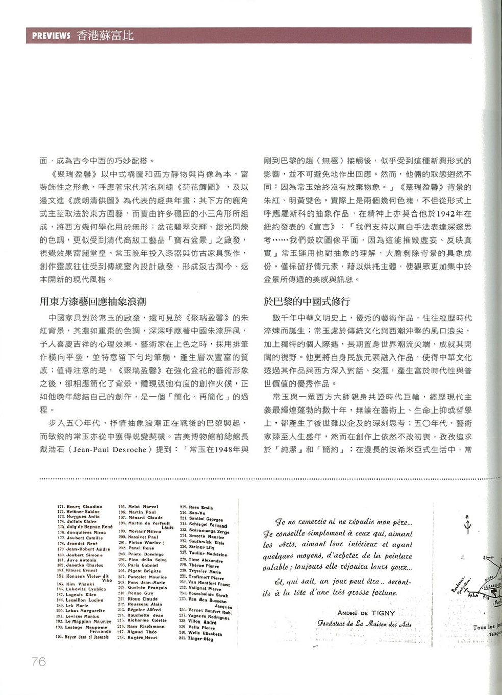 數千年中華文明史上,優秀的藝術作品,往往經歷時代淬煉而誕生;常玉處於傳統文化與西潮沖擊的風口浪尖,加上獨特的個人際遇,長期置身世界潮流尖端,成就其開闊的視野。他更將自身民族元素融入作品,使得中華文化透過其作品與西方深入對話、交匯,產生富於時代性與普世價值的優秀作品。