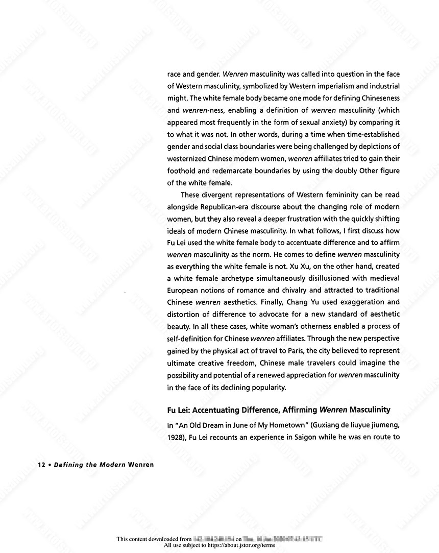 Fu Lei: Accentuating Difference, Affirming Wenren Masculinity