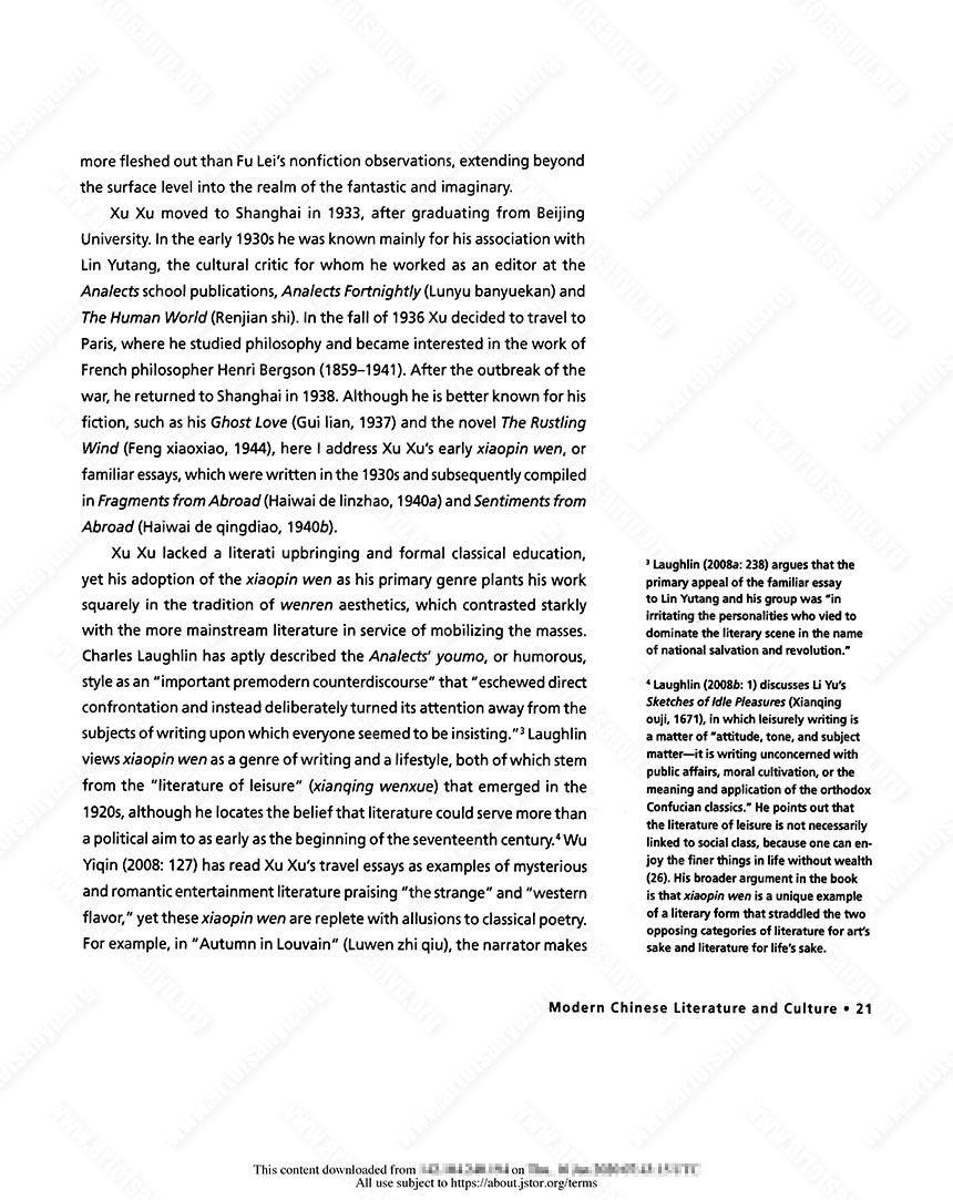 Laughlin, Charles. 2008a. “The Analects Group and the Genre of Xiaopin.” In Kirk A. Denton and Michel Hockx, eds.. Literary Societies in Republican China. Lanham, MD: Lexington Books, 207–240.