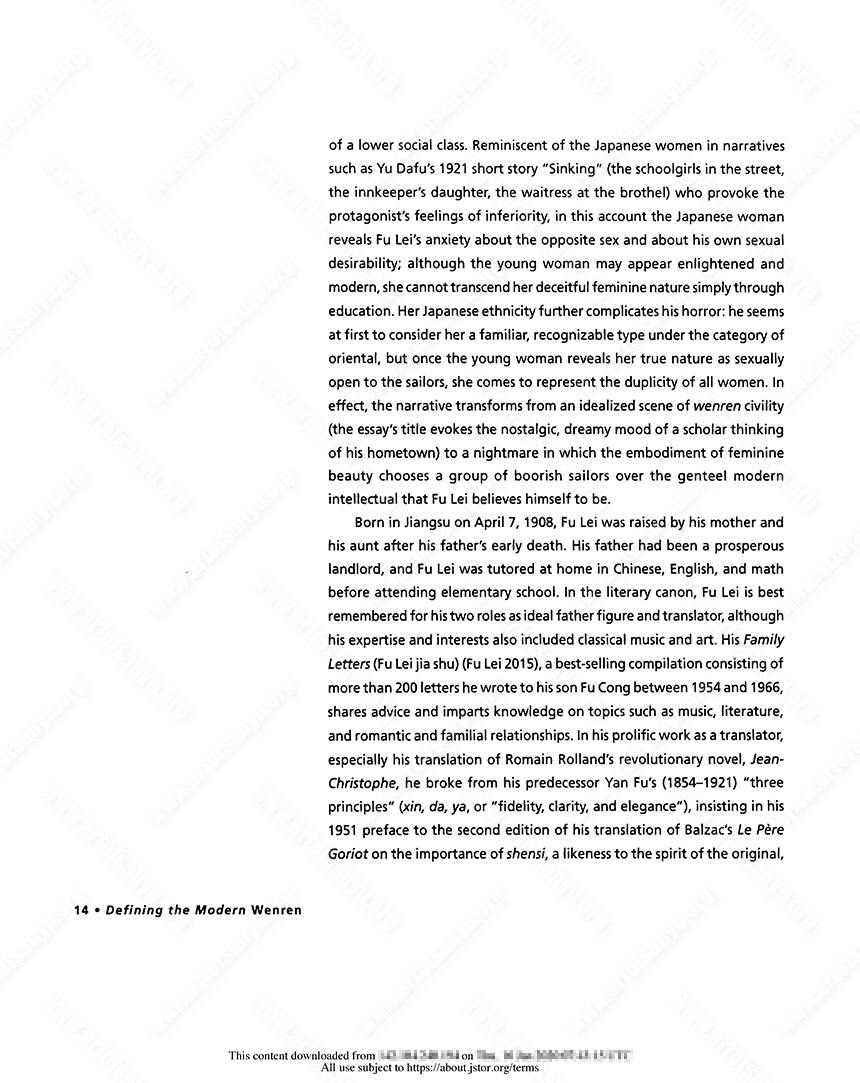 Fu Lei: Accentuating Difference, Affirming Wenren Masculinity