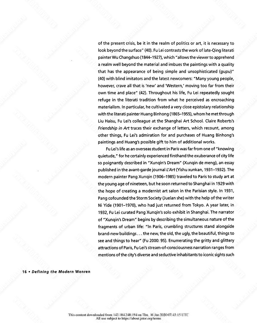 Fu Lei: Accentuating Difference, Affirming Wenren Masculinity