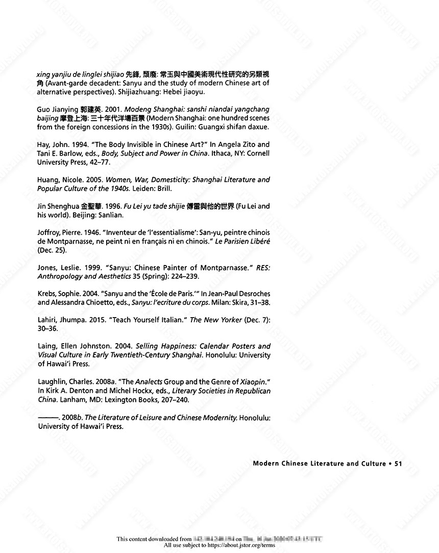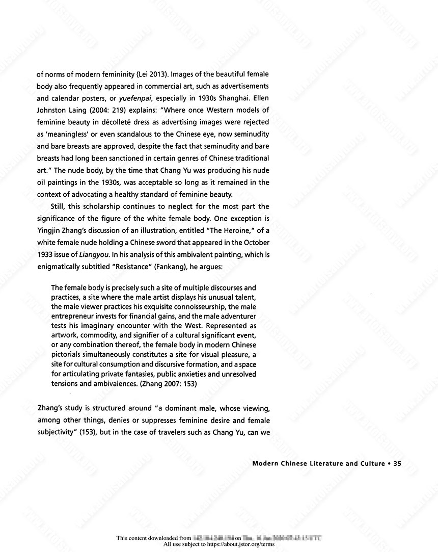 Zhang, Yingjin. 2007. “Artwork, Commodity, Event: Representations of the Female Body in Modern Chinese Pictorials.” In Jason Kuo, ed., Visual Culture in Shanghai, 1850s–1930s. Washington DC: New Academ
