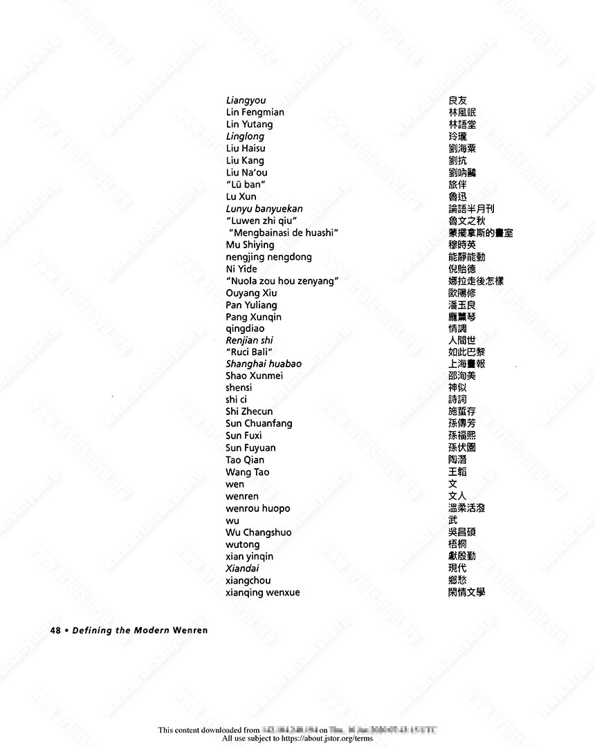 Laughlin, Charles. 2008a. “The Analects Group and the Genre of Xiaopin.” In Kirk A. Denton and Michel Hockx, eds.. Literary Societies in Republican China. Lanham, MD: Lexington Books, 207–240.