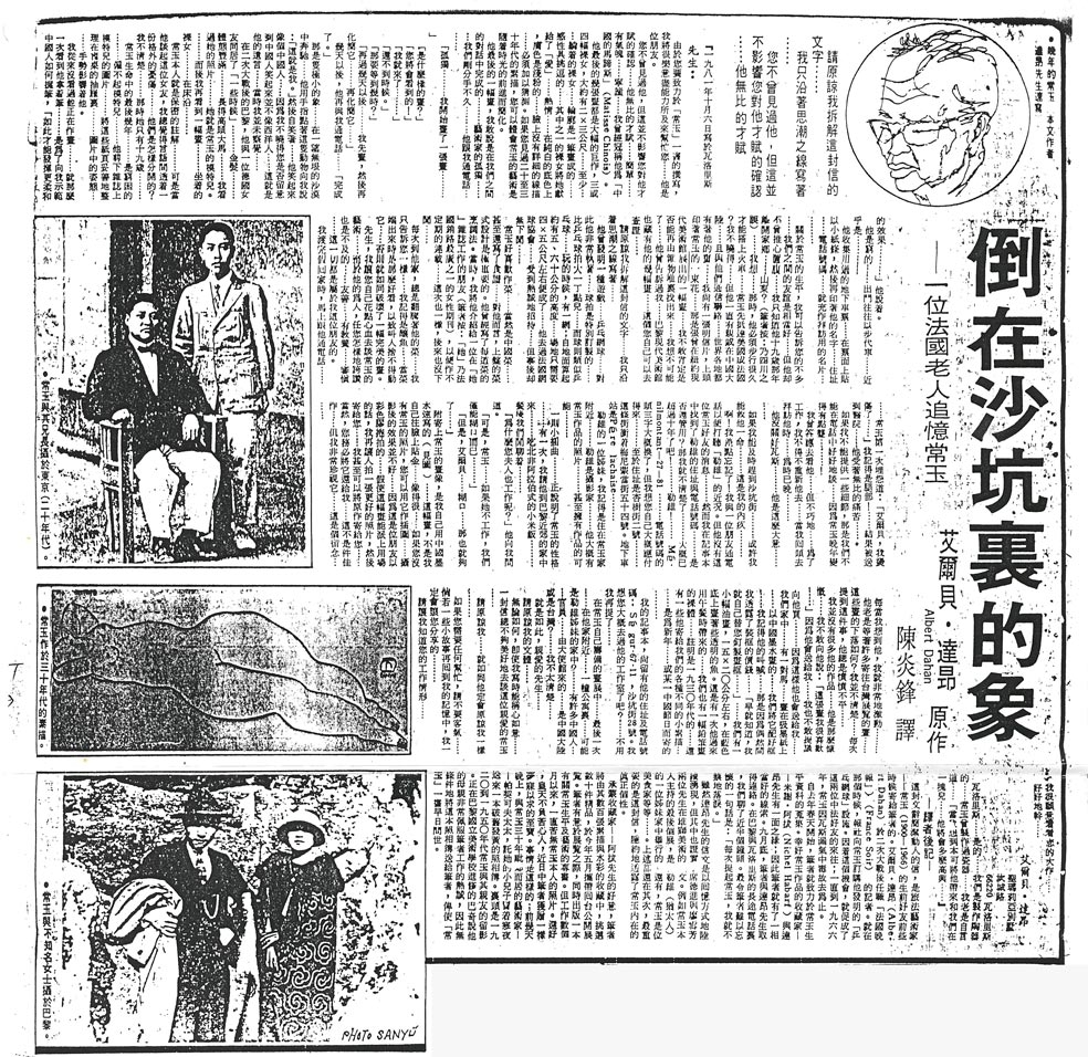 雖然達昂先生的信文是以回憶方式地陸續湧現,但其中也證實,席德進與廖雪芳兩位先生在雄獅美術的敘文。例如常玉本人主持的最後個展,是在勒維(猶太人)的一位姊妹家中舉行的。還有,常玉是位美食家等等……。上述都還在其次,最重要的是這封信,隱約地透露了常玉內在的真正個性。