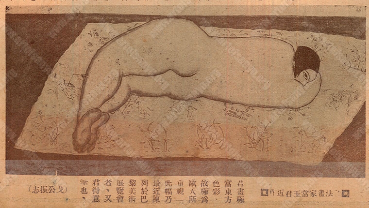 君畫極富東方色彩,故極為歐人所重視。此幅乃最近陳列於巴黎美術館展覽會者,又君得意筆也。