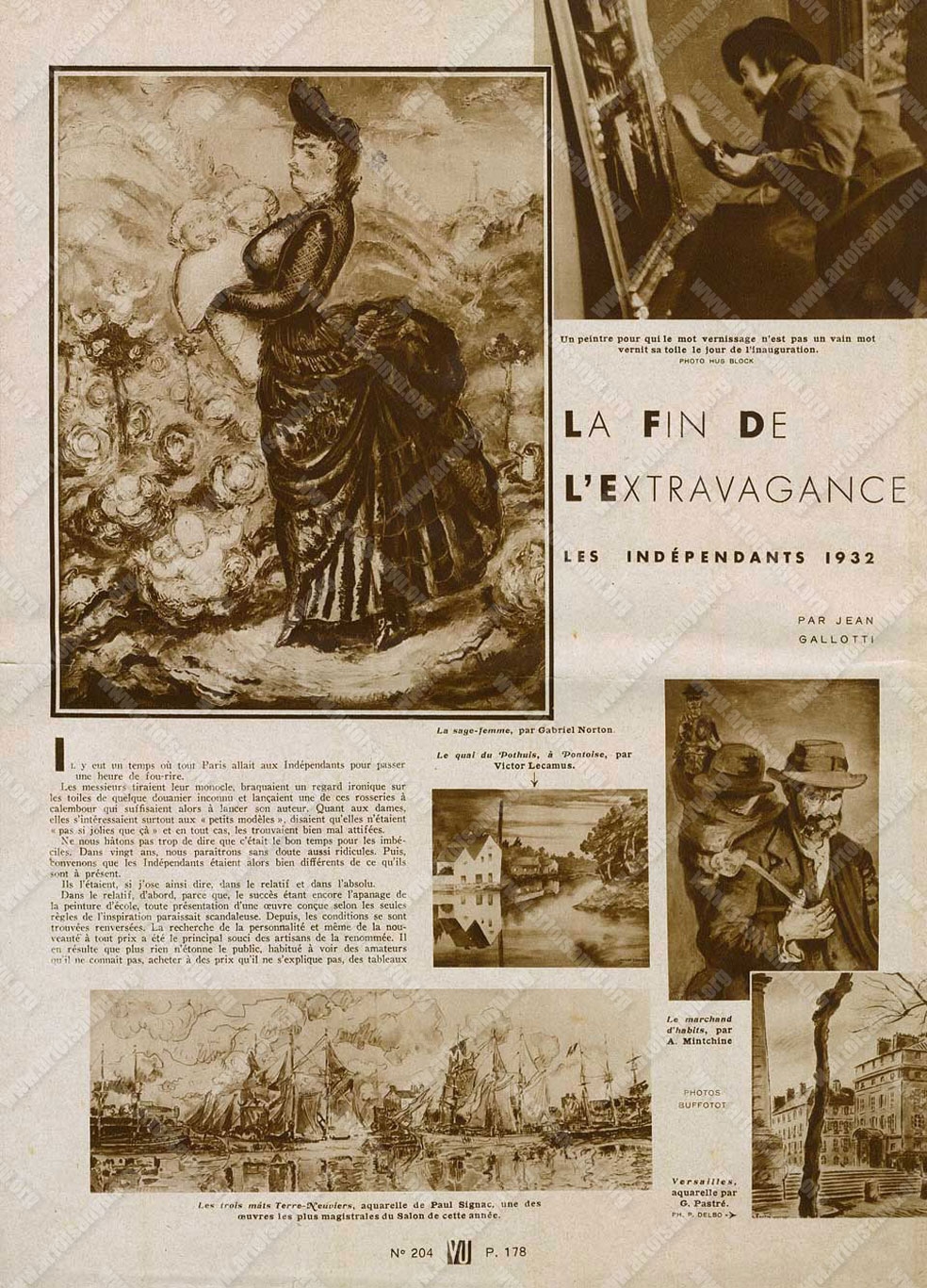 Il serait impossible de signaler toutes les bonnes choses et même toutes les très bonnes. Certaines, pourtant, émergent dans les souvenirs laissés par cette visite : Le port de Rouen et Un portrait de Texier, Les paysages parisiens de Ch. Baillet, les premiers envois de Ginette Signac, une Vue de Versailles et Un paysage parisien, de Gaston Pastré, où l’on retrouve l’habituelle finesse de vision et toute la sensibilité de l’illustrateur de Barbey d’Aurevilly, Une plaine et Un quai de Pontoise, de V. Locamus, aquarelles pleines de liberté et de fougue, les pastels de Mlle Lattès, les nus sensuels et précieux du Japonais Micao Kono, les bustes de Takata, les charmants chevaux restés si exotiques du Chinois Sanyu, les pochades d’Adler, les paysages d’Igonnet de Villers et bien d’autres encore...