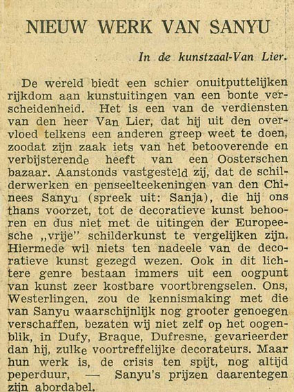 Nieuw Werk van Sanyu, in de kunstzaal van Lier