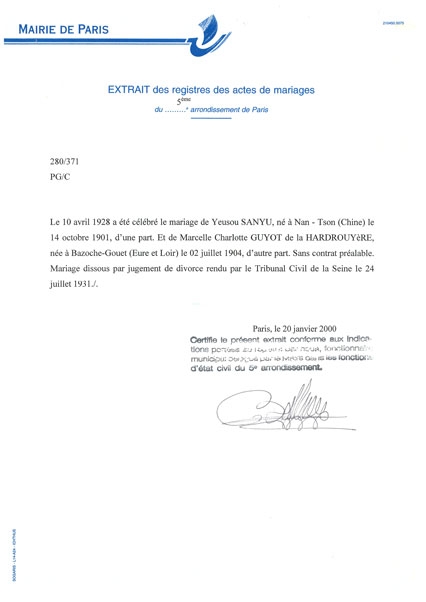 Extrait des registres des actes de mariages du 5ème arrondissement de Paris