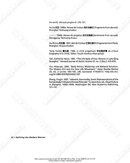 定義現代「文人」以及白人女性身體在中國現代文學和藝術中的作用