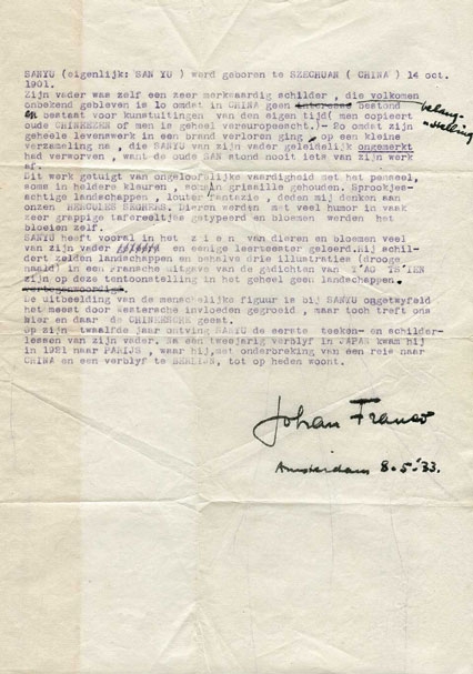 Yu Sanyu. Tentoonstelling van Chineesche Kunst bij J. H. de Bois te Haarlem.