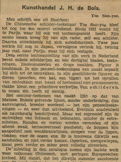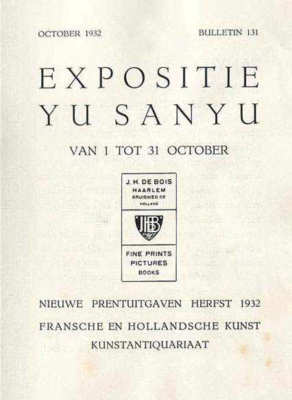 Yu Sanyu. Tentoonstelling van Chineesche Kunst bij J. H. de Bois te Haarlem.