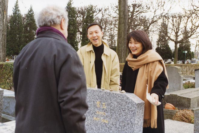 左起:羅勃.法蘭克、吳日曦及衣淑凡於整修後的常玉墓地