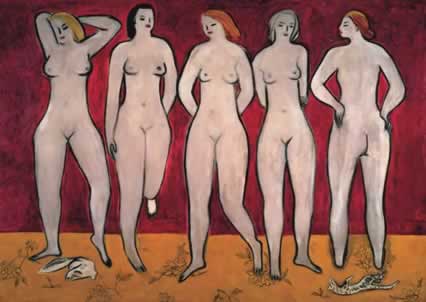 粉簾立姿雙裸女
