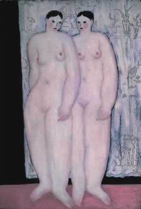 粉簾立姿雙裸女