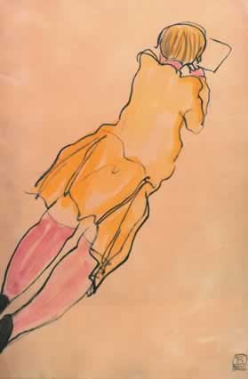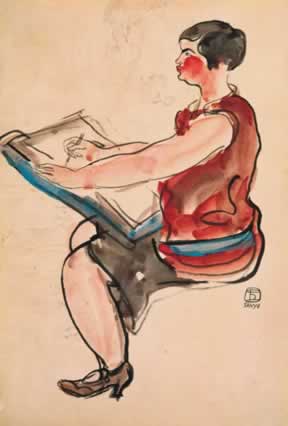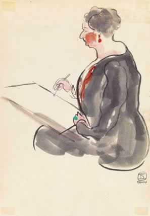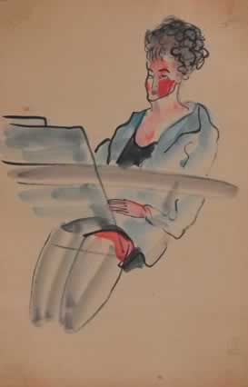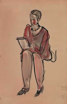 素描中的藍裙女士