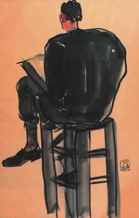 凳上的素描身影