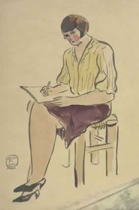 素描中的藍裙女士