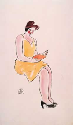 閱讀中的黃裙女士