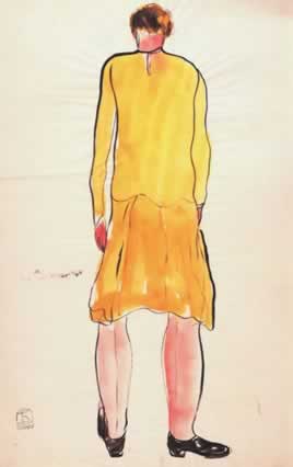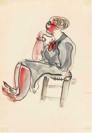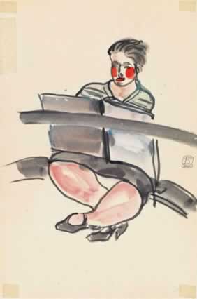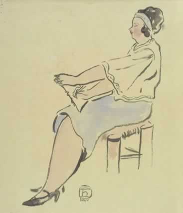 素描中的藍裙女士