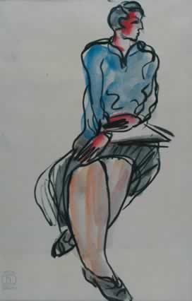 素描中的藍裙女士