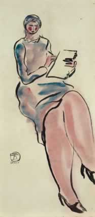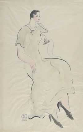 素描中的藍裙女士
