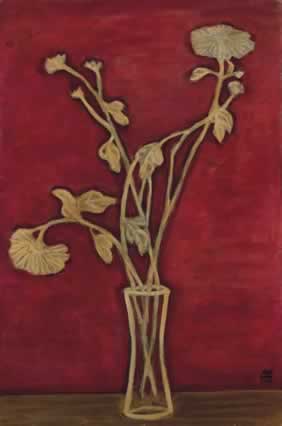 紅底白菊